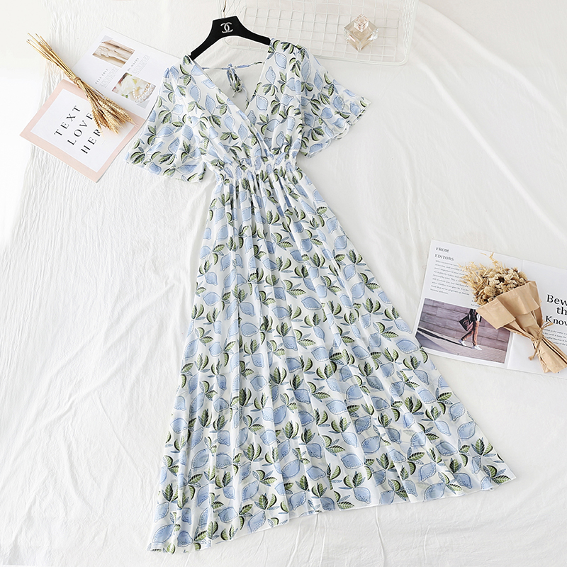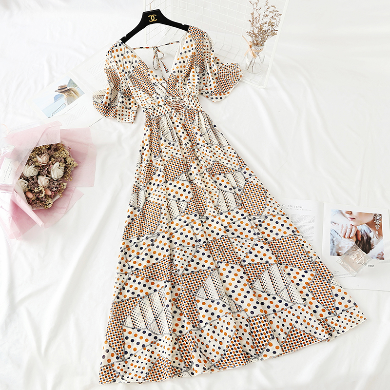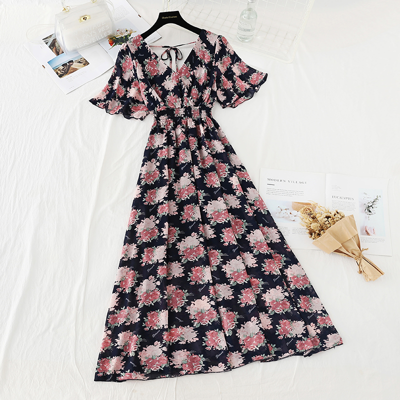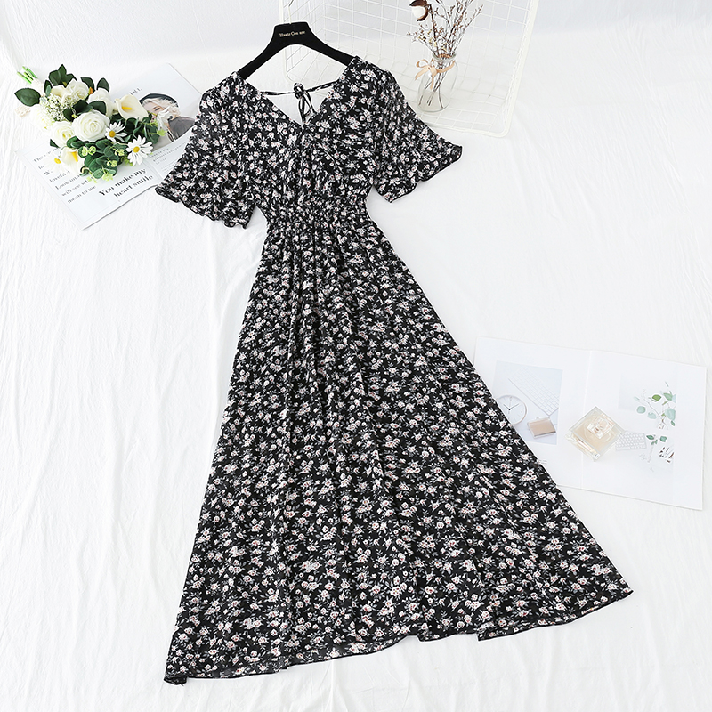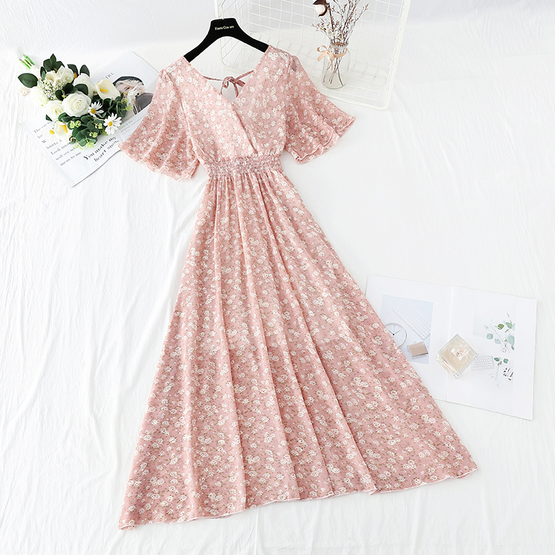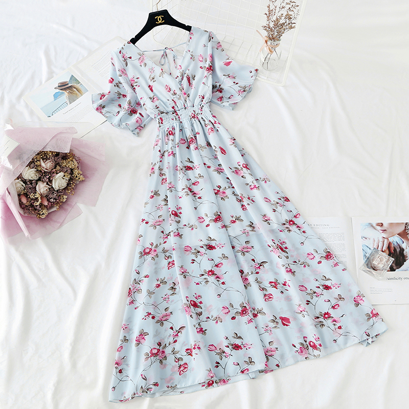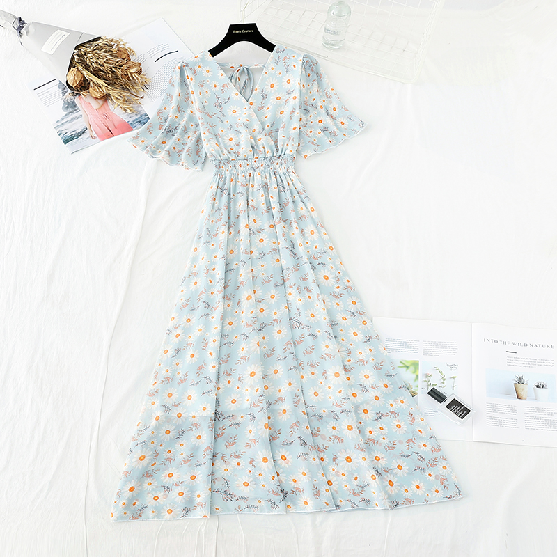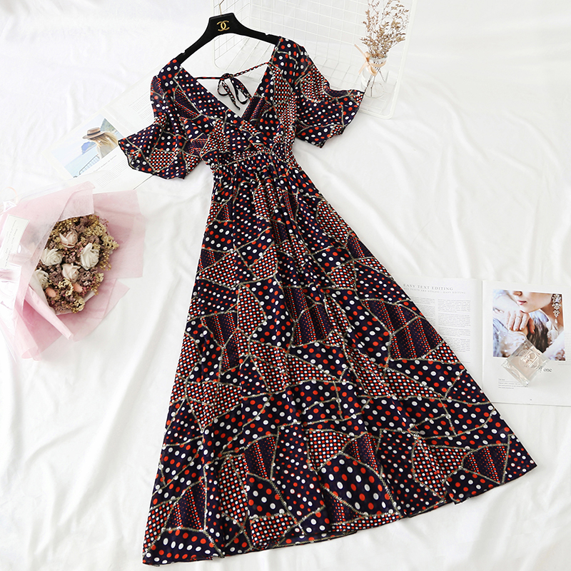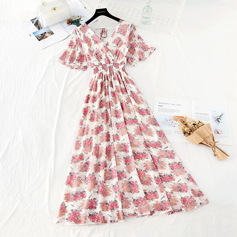 The Retro V-Neck Chiffon Long Dress combines graceful movement with a soft, feminine design. Crafted from lightweight chiffon fabric, it creates a smooth and flowing silhouette that feels comfortable throughout the day. The flattering V-neckline and elastic waist design help enhance natural body shape while maintaining ease of wear. Short sleeves and a large swing skirt add elegance and airy movement to every step. Designed as a single-piece pullover dress, it offers both simplicity and timeless style for everyday elegance. Chiffon garments are widely appreciated for their light texture and flowing drape, making them ideal for elegant long dresses and warm-weather styling.