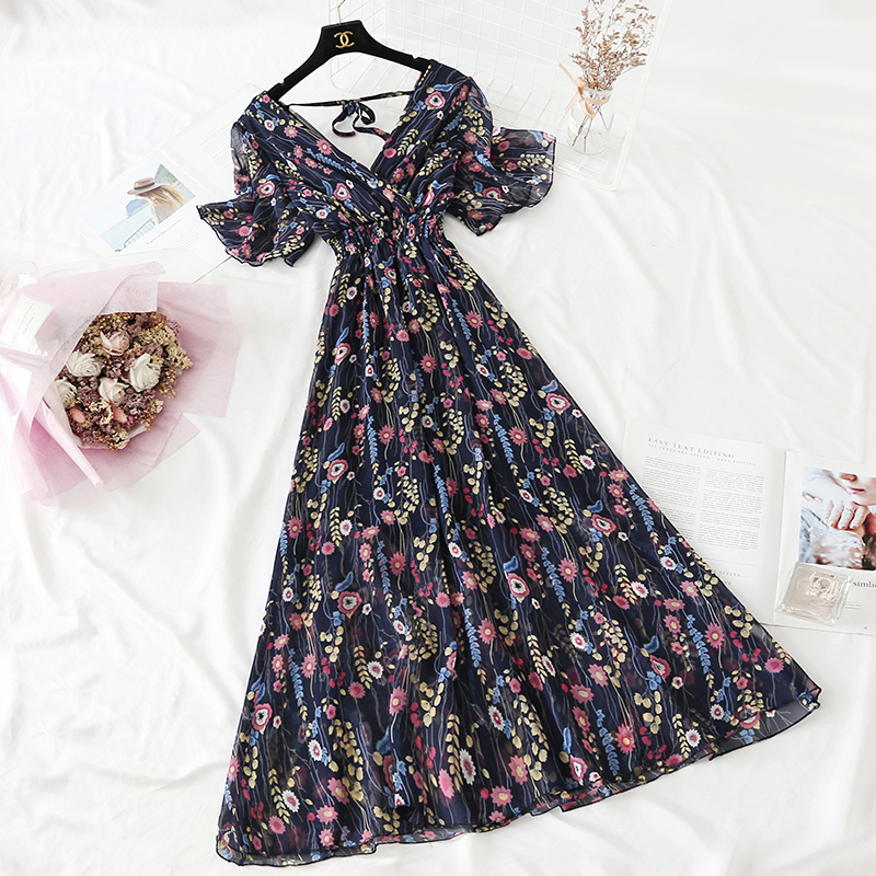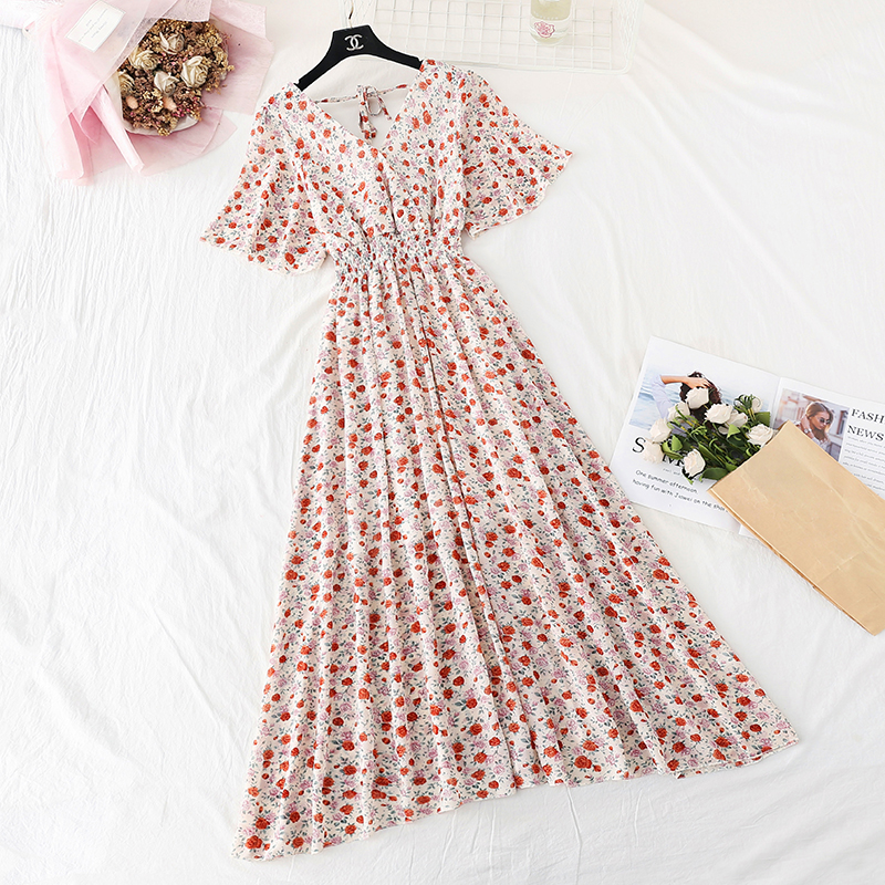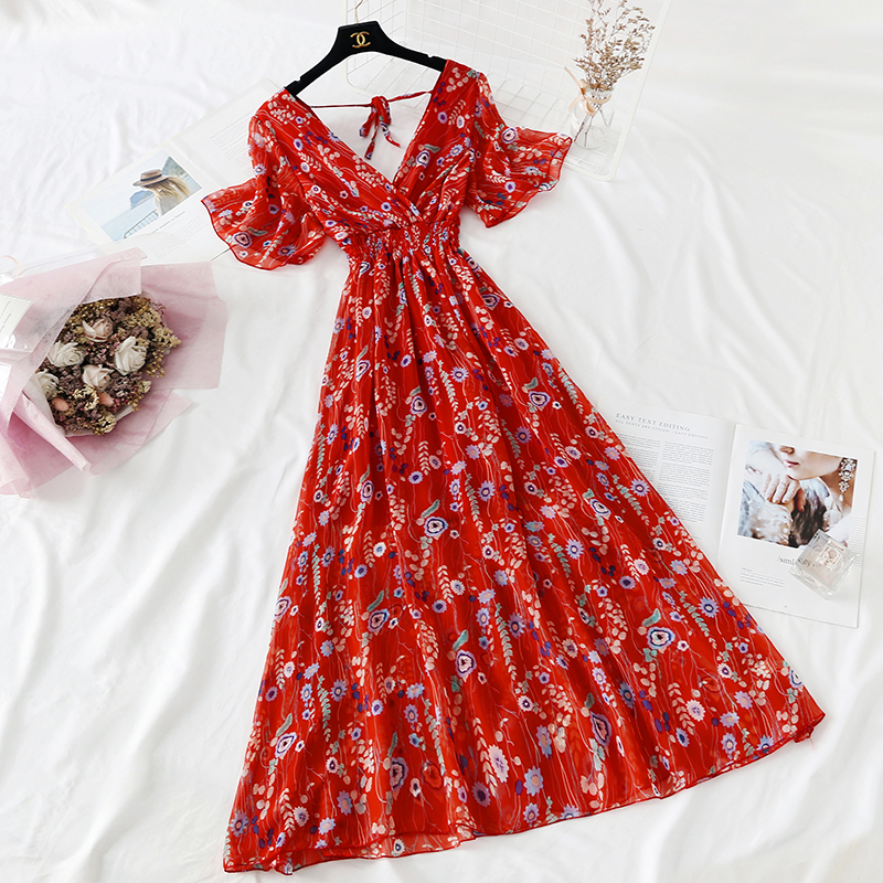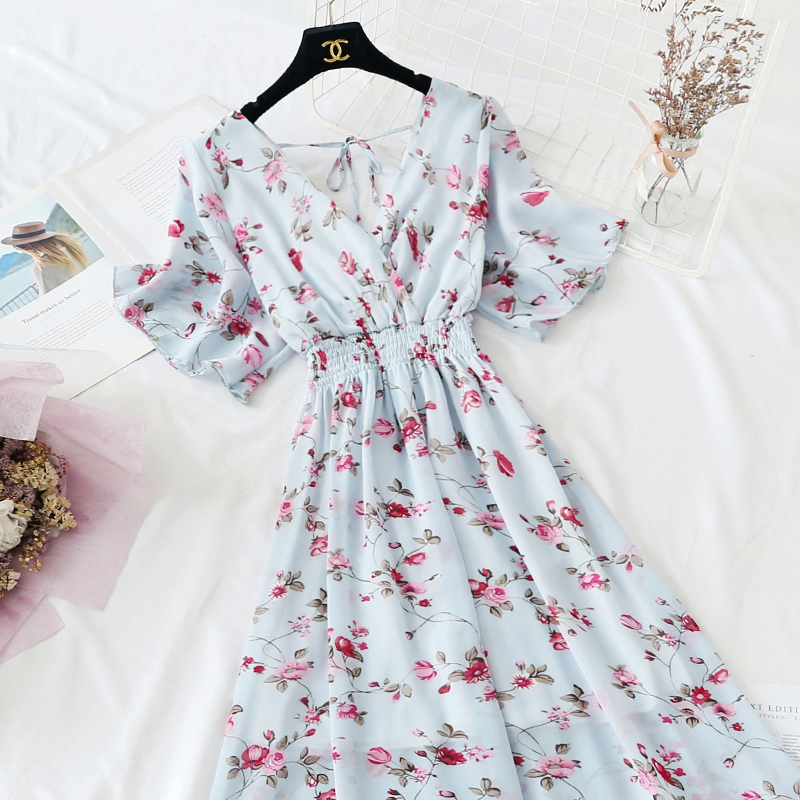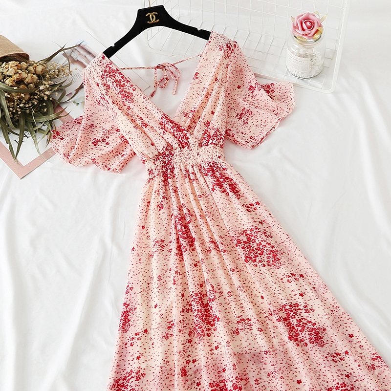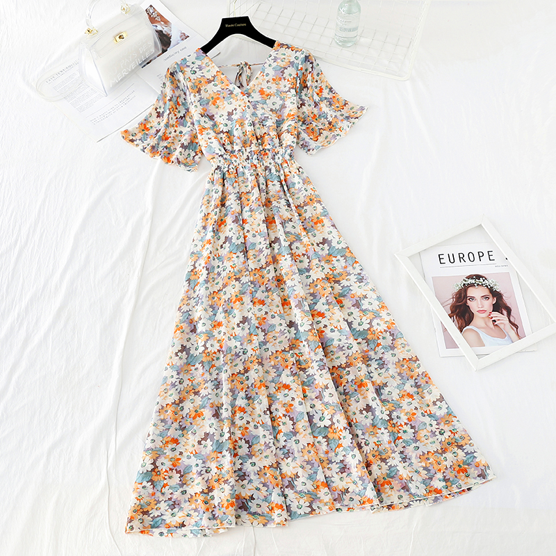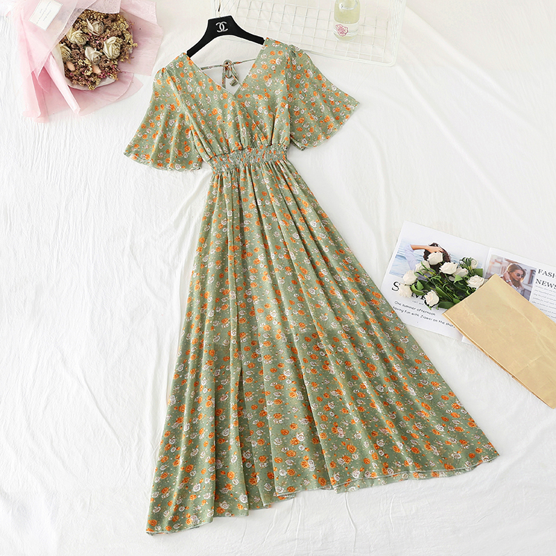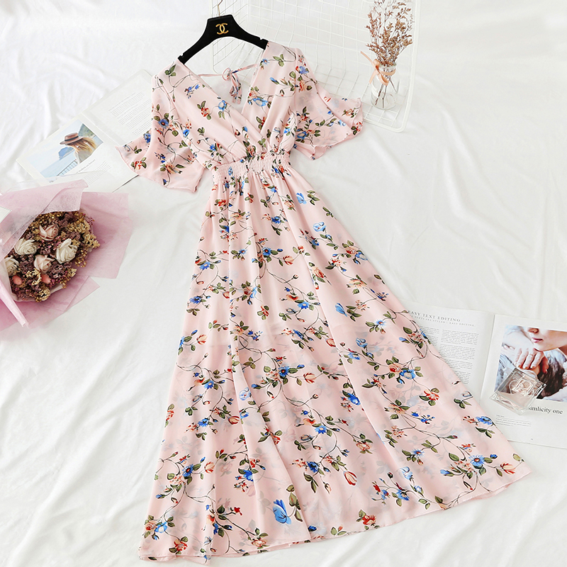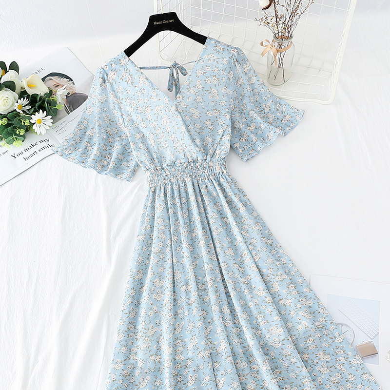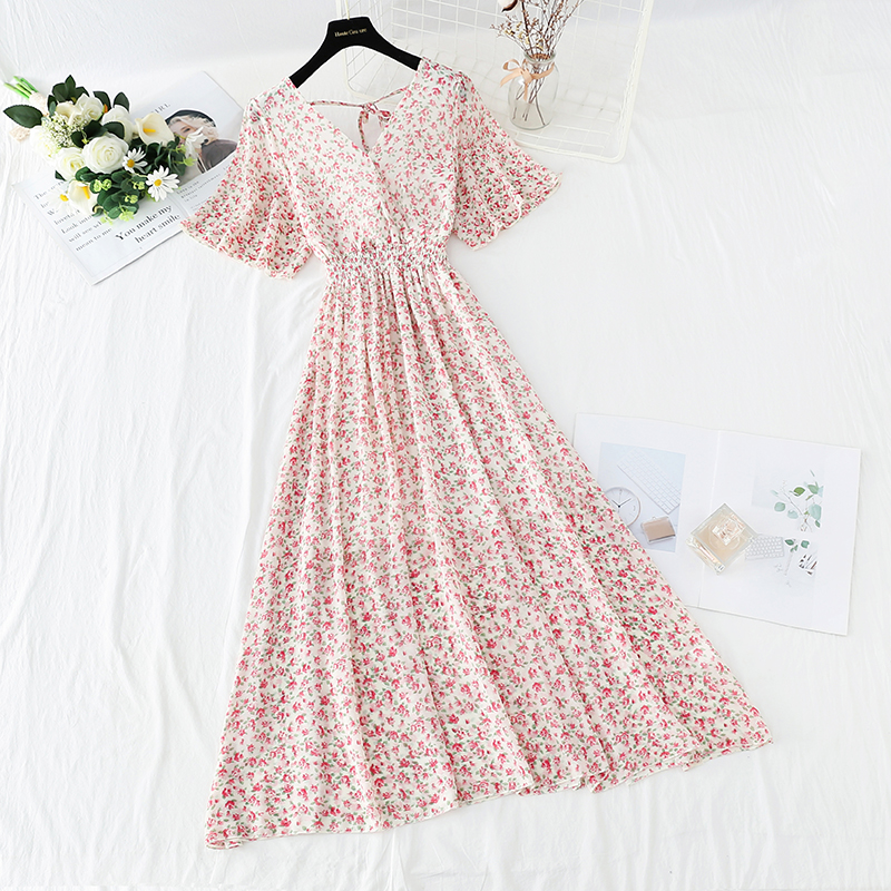 The Retro V-Neck Chiffon Long Dress combines graceful movement with a soft, feminine design. Crafted from lightweight chiffon fabric, it creates a smooth and flowing silhouette that feels comfortable throughout the day. The flattering V-neckline and elastic waist design help enhance natural body shape while maintaining ease of wear. Short sleeves and a large swing skirt add elegance and airy movement to every step. Designed as a single-piece pullover dress, it offers both simplicity and timeless style for everyday elegance. Chiffon garments are widely appreciated for their light texture and flowing drape, making them ideal for elegant long dresses and warm-weather styling.