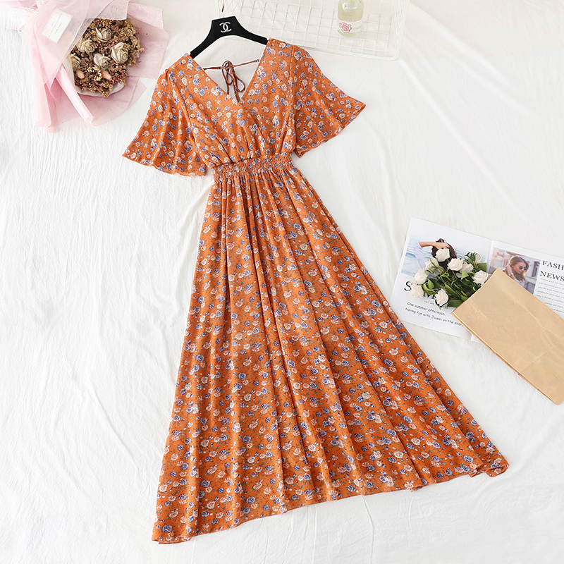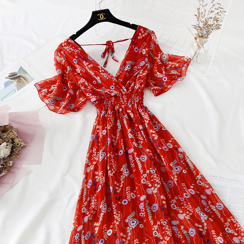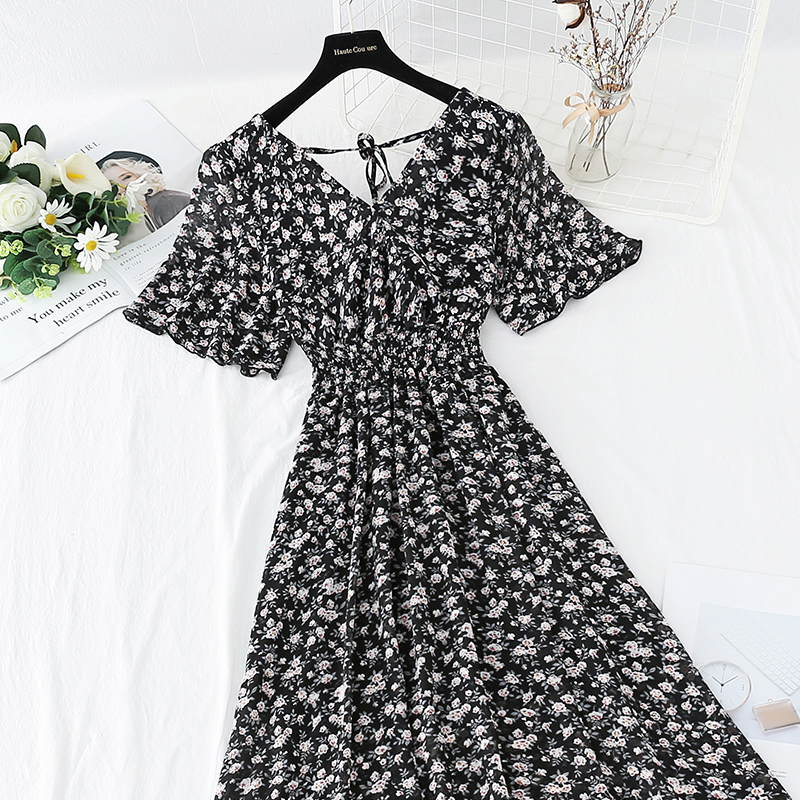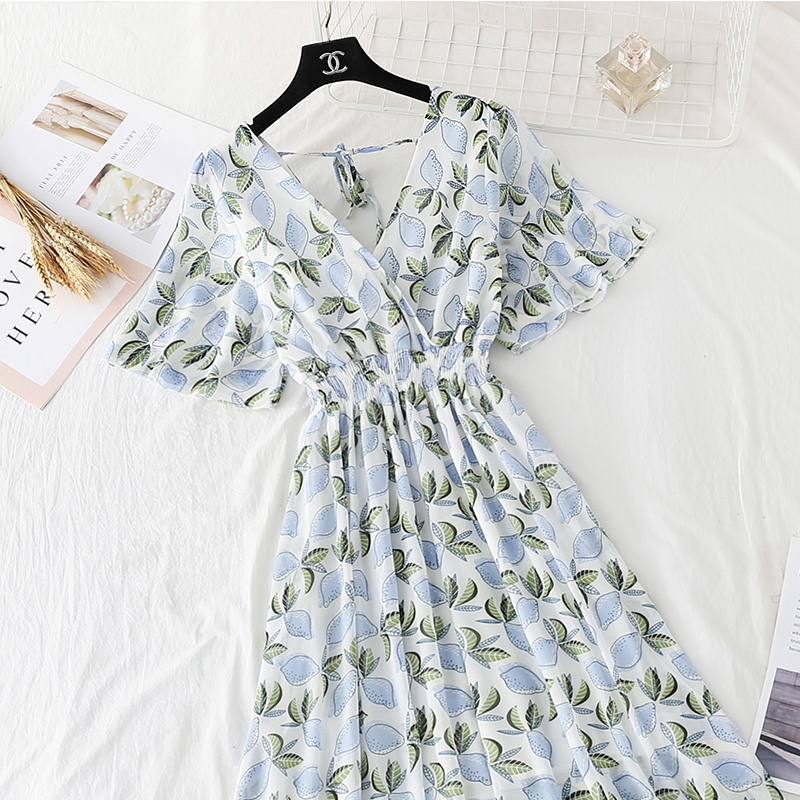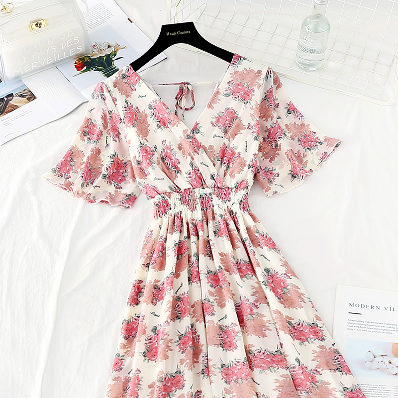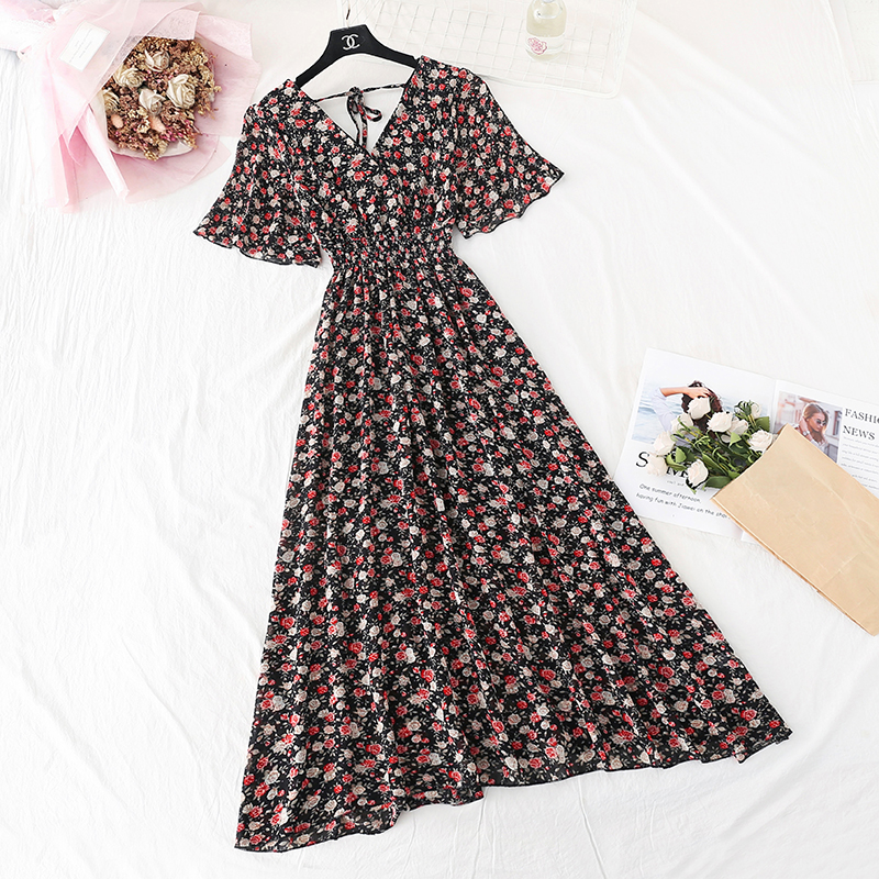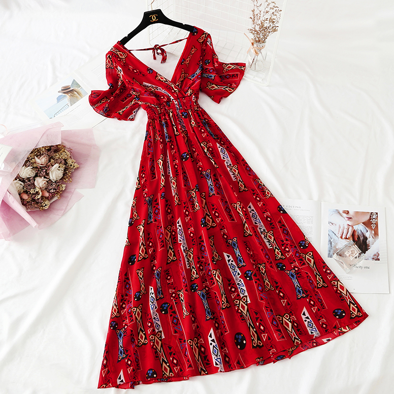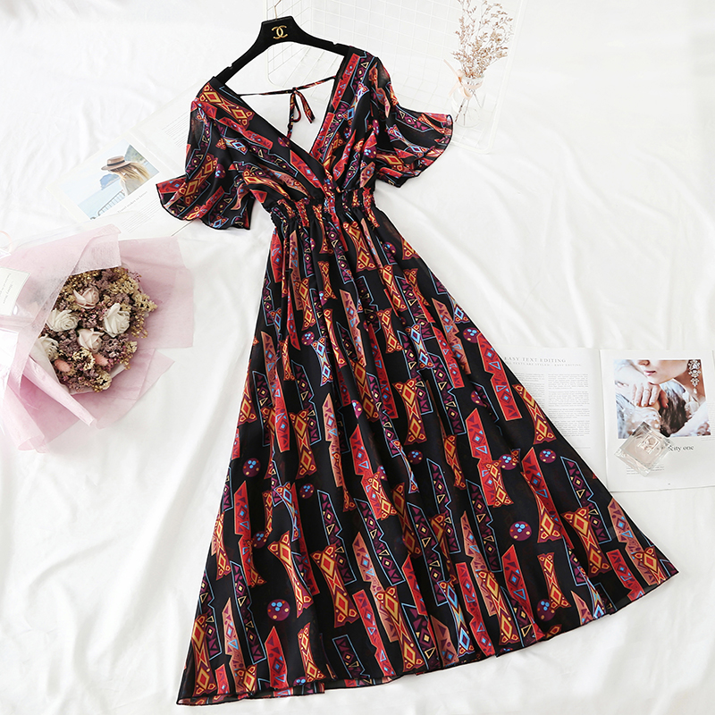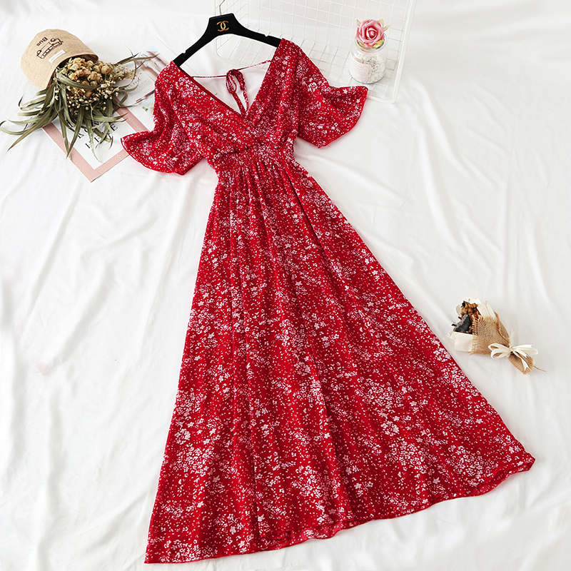The Retro V-Neck Chiffon Long Dress combines graceful movement with a soft, feminine design. Crafted from lightweight chiffon fabric, it creates a smooth and flowing silhouette that feels comfortable throughout the day. The flattering V-neckline and elastic waist design help enhance natural body shape while maintaining ease of wear. Short sleeves and a large swing skirt add elegance and airy movement to every step. Designed as a single-piece pullover dress, it offers both simplicity and timeless style for everyday elegance. Chiffon garments are widely appreciated for their light texture and flowing drape, making them ideal for elegant long dresses and warm-weather styling.