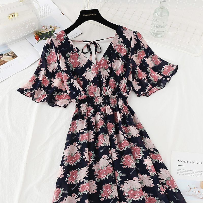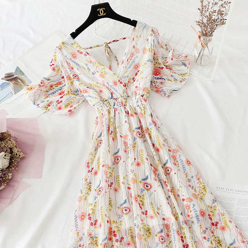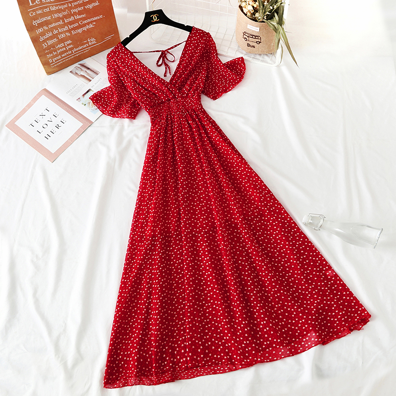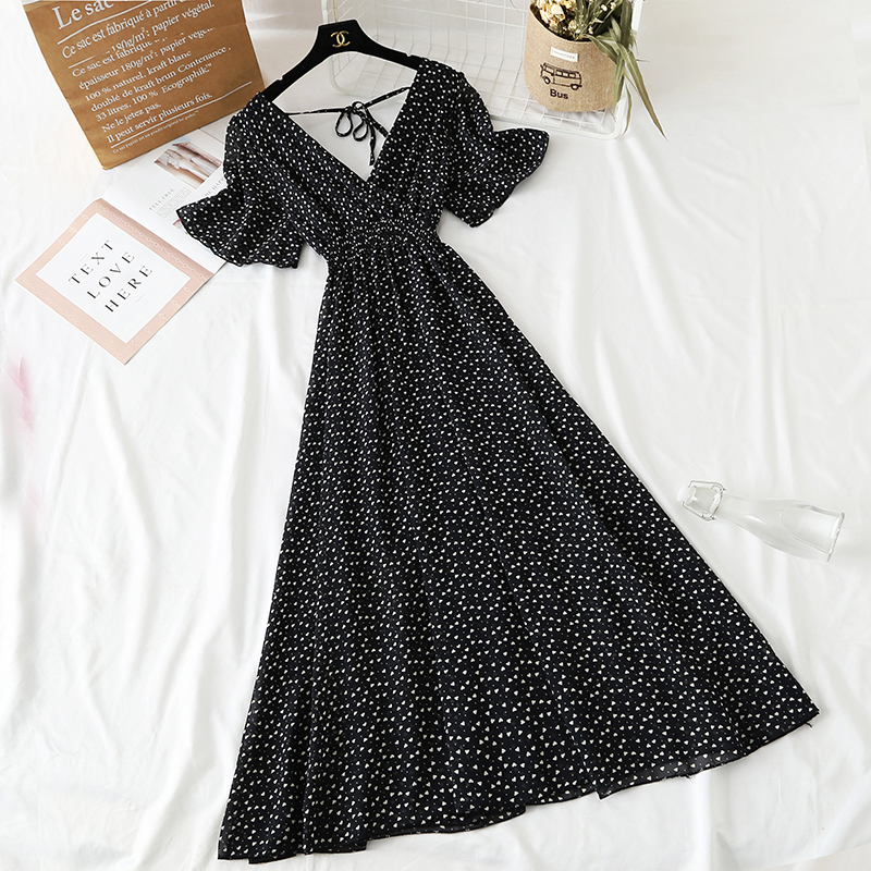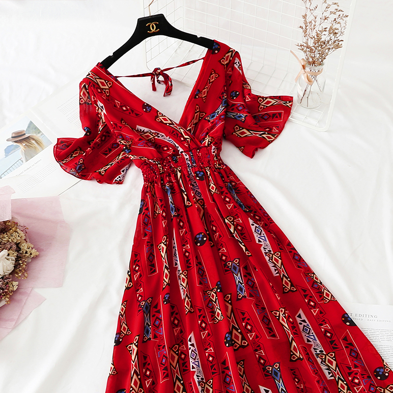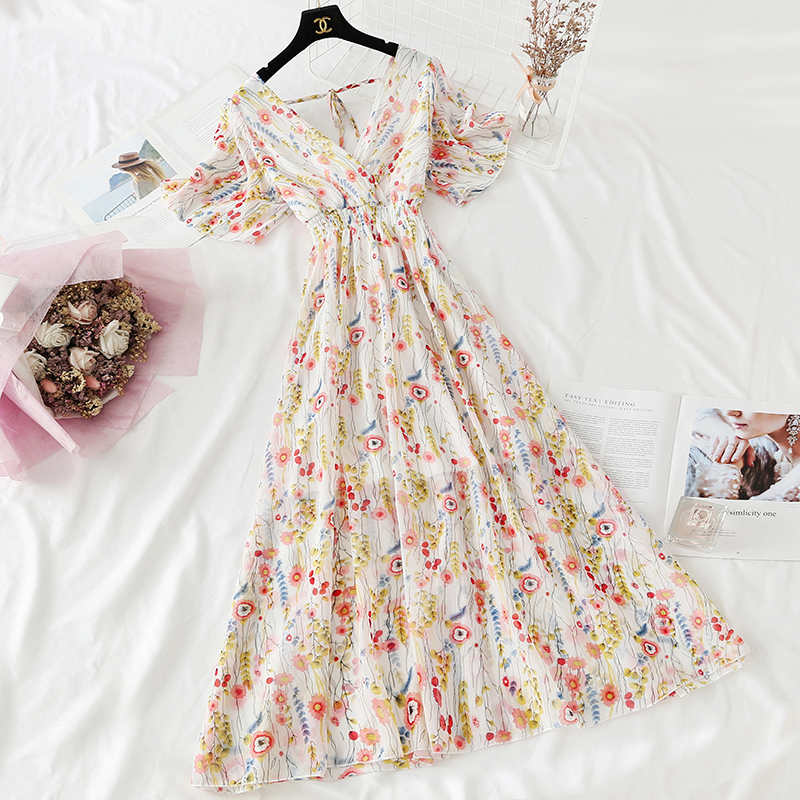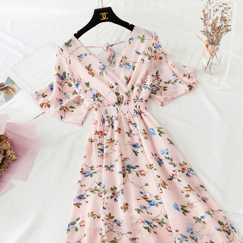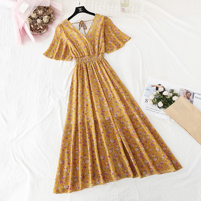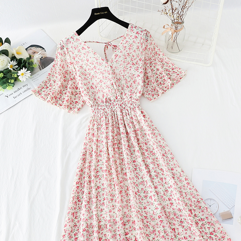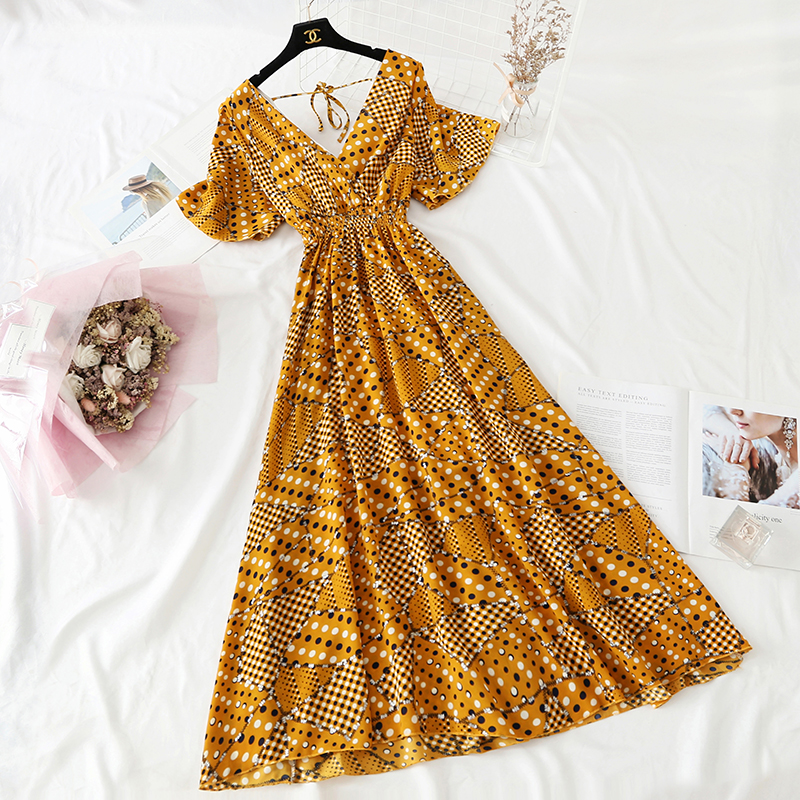 The Retro V-Neck Chiffon Long Dress combines graceful movement with a soft, feminine design. Crafted from lightweight chiffon fabric, it creates a smooth and flowing silhouette that feels comfortable throughout the day. The flattering V-neckline and elastic waist design help enhance natural body shape while maintaining ease of wear. Short sleeves and a large swing skirt add elegance and airy movement to every step. Designed as a single-piece pullover dress, it offers both simplicity and timeless style for everyday elegance. Chiffon garments are widely appreciated for their light texture and flowing drape, making them ideal for elegant long dresses and warm-weather styling.